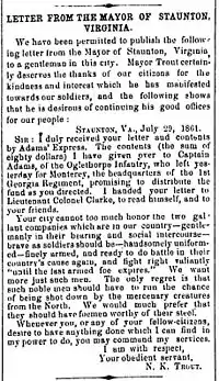 - "Staunton During the Civil War". Encyclopedia Virginia. Archived from the original on September 3, 2011. Retrieved August 17, 2011.
