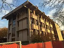 The firm designed several buildings for the University of Nebraska, Lincoln following WWII. In 1949, the Agronomy Building was to be redesigned. The then-head of the Department of Architecture, Linus Burr Smith drew up original plans and stated that only four firms in Nebraska were capable of completing the design. Steele, Sandham and Steele were chosen. The Agronomy Building was considered to be sophisticated and elegant at the time it was constructed, with state of the art laboratories and modern amenities. The building was renamed for a long time department chair, Franklin D Keim, in 1957 who had retired in 1952 after the building's completion.[7] The firm was renamed Steele, Sandham and Weinstein following the death of William Steele Sr. and the partnering of Alex Weinstein. They designed Behlen Laboratory under this name in 1962. Behlen Laboratory was one of the few brutalist buildings built in Nebraska.[8]