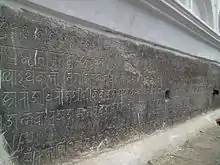 The early inscriptions are from the Licchavi period, and date from the fifth to the ninth centuries. They number more than 170, and are carved in Sanskrit language and Gupta script.[2][3] Inscriptions from the 14th century onwards, which are the most numerous, are in Nepal language (Nepal Bhasa) and Nepal script.[4] The earliest dated inscription in Nepal Bhasa is dated Nepal Era 293 (1173 AD).[5]