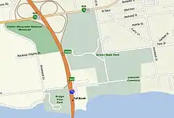 Straits State Park is a state park in the U.S. state of Michigan located in St. Ignace, Mackinac County, on the northern shore of the Straits of Mackinac. The Father Marquette National Memorial and park is also located within the state park boundaries. The park has 255 campsites and several locations for viewing the Mackinac Bridge.[1]