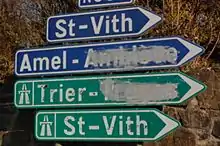 | Wikimedia Commons has media related to Vandalised bilingual road signs in Belgium because of language issues. |