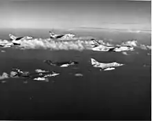 At the point of its introduction, the Scimitar was the largest, heaviest and most powerful aircraft to have entered service with the Fleet Air Arm.[18] In June 1958, operational training on the type commenced with 803 Naval Air Squadron at RAF Lossiemouth, prior to their embarkment upon the aircraft carrier HMS Victorious during September of that year. Multiple squadrons formed around the Scimitar shortly thereafter, leading to its use upon the carriers HMS Ark Royal, HMS Centaur, HMS Eagle, and HMS Victorious as well.[19]