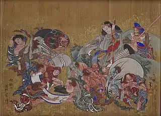 ![]() Susanoo slaying the Yamata no Orochi, by Utagawa Kuniyoshi | |