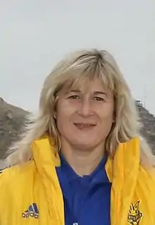She has been a member of the Ukrainian national team since its first match in August 1993,[3] and was called up for the 2009 European Championship though she didn't play.[4]
