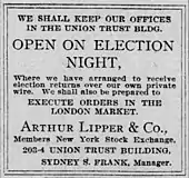Frank served as team president of the Baltimore Orioles of the American League in 1901, their inaugural season.[2] John Mahon was elected to succeed Frank as chairman at the annual stockholders' meeting in February 1902.[3] Outside of baseball, Frank managed the brokerage firm of Arthur Lipper & Company, and his business obligations were cited as the reason that he did not continue as president of the Orioles.[3][4]