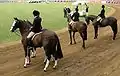 The first-place winner in the "Ridden Hack" class is escorted on a lap of honour by a steward