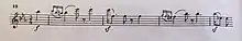Rather unusually for Haydn,[10] he altered the fourth movement after it was completed, removing 13 bars fairly close to the end. The original autograph score preserves this music; it modulates to the key of C♭ major and includes a two-measure rest; with the dynamic markings p and pp.[11] Robbins Landon suggests that Haydn removed the passage because it "would hold up the course of the movement."[12] The symphony is occasionally performed with the deleted passage included; e.g. in recorded versions by Antal Doráti and Frans Brüggen.