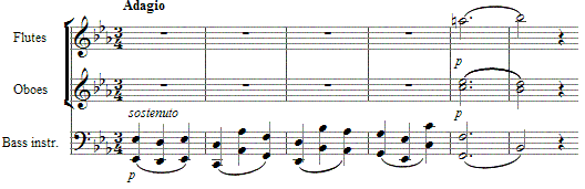H. C. Robbins Landon has remarked that at the start the theme is ambiguous between duple and triple time[5] and between the keys of C minor and (what ultimately proves the case) E♭ major.