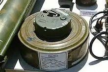 The TM-72 is a Soviet cylindrical metal-cased anti-tank mine. It is normally used with the MVN-72 or MVN-80 magnetic influence fuzes, which give it a full width attack capability. It uses a 2.5 kg shaped charge warhead capable of penetrating approximately 100 millimeters of armor at a standoff distance of between 0.25 and 0.5 meters. It is compatible with the fuzes used with the TM-62 series of mines.