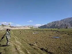 Because of the harsh and scarce environment in which the locals live in, they mostly rely on cultivating whatever arable land is available and engage in small-scale animal husbandry. Other types of subsistence also include selling traditional embroidery, clothes, hats, and other arts and crafts. However, this is only a seasonal operation. There are also a few governmental wages available but salaried jobs are few and the demand is very high.[3]