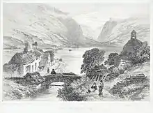 Tal-y-llyn Lake,[2][3][4] (Welsh: Llyn Mwyngil), also known as Talyllyn Lake and Llyn Myngul, is a large glacial ribbon lake in Gwynedd, North Wales. It is formed by a post-glacial massive landslip damming up the lake within the glaciated valley.[5] The hamlet of Talyllyn lies at the west end of the lake.[3]