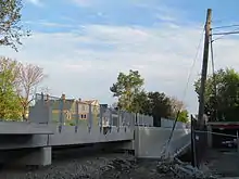A $15.9 million contract for construction of the station and the replacement of the adjacent Talbot Avenue overpass was awarded in August 2010.[6] Construction began in November 2010, with a footbridge connecting Park Street to West Park Street removed in December.[7] An official groundbreaking was held in June 2011.[8] The bridge over Talbot Avenue was replaced during the third weekend of December 2011, using techniques developed in MassDOT's Fast 14 highway bridge replacement program.[5]