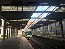 This station consists of two ground-level opposed side platforms serving two tracks.