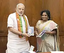 Soundararajan became interested in politics from childhood, having been brought up in a political family.[8] She was elected as a student leader during her studies at Madras Medical College. She served the Tamil Nadu state BJP unit in various capacities starting from South Chennai District Medical Wing Secretary in 1999, State General Secretary Medical Wing in 2001, All India Co-Convenor (Medical Wing For Southern States)[9] in 2005, State General Secretary in 2007, State Vice-President in 2010 and elevated as National Secretary, All India BJP in 2013.[10] She was appointed as the Governor of Telangana on 1 September 2019 by the order of the President of India, Ram Nath Kovind. She took charge as Governor of Telangana on 9 September 2019.
