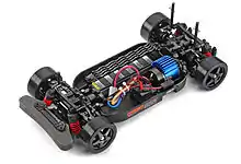 The TT-01 is a 1/10 scale shaft-driven R/C chassis made by Tamiya. Since its release in 2003,[1] the TT-01 has become a very popular entry-level chassis, especially for drifting and rallying applications. The bathtub chassis frame combined with the central driveshaft makes it a durable car for everyday surfaces, and its relatively light weight plastic chassis and cut-out mounting positions for the battery and motor gives it a low center of gravity. Both in Europe and the US the TT-01 is the de facto choice for 24-hour endurance races. These events see teams of competitors, hobbyists, and friends build their TT-01 kit at the track the morning of the race then compete for 24 hours with teams of 5-8 people just like the races at Lemans and Daytona. Tamiya's recent addition of LED lights in most of their TT-01 kits sees these races take on an even more realistic look as the cars sport head and tail lights at night.