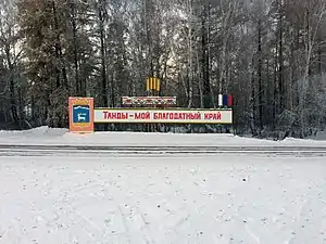 Tandinsky District (Russian: Танди́нский кожуун; Tuvan: Таңды кожуун) is an administrative[1] and municipal[2] district (raion, or kozhuun), one of the seventeen in the Tuva Republic, Russia. It is located in the center of the republic. The area of the district is 5,091.70 square kilometers (1,965.92 sq mi).[2] Its administrative center is the rural locality (a selo) of Bay-Khaak.[1] Population: 12,891 (2010 Census);[3] 13,827 (2002 Census);[6] 23,653 (1989 Census).[7] The population of Bay-Khaak accounts for 23.1% of the district's total population.[3]