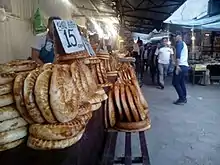 Obi non or lepyoshka (Russian: лепёшка, "flatbread"), is a kind of flatbread in Afghan, Tajik and Uzbek cuisine. It is shaped like a disc and thicker than naan. Obi non are baked in clay ovens called tandyr.[2][3]