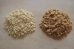 ![]() Two kinds of tarhana: tarhana with yoghurt (left) and wholemeal wheat tarhana from Crete (right) | |
