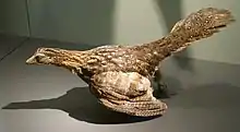 A study skin is a taxidermic zoological specimen prepared in a minimalistic fashion that is concerned only with preserving the animal's skin, not the shape of the animal's body.[41] As the name implies, study skins are used for scientific study (research), and are housed mainly by museums. A study skin's sole purpose is to preserve data, not to replicate an animal in a lifelike state.[41] Museums keep large collections of study skins in order to conduct comparisons of physical characteristics to other study skins of the same species. Study skins are also kept because DNA can be extracted from them when needed at any point in time.[42]