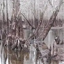This article incorporates public domain material from websites or documents of the United States Department of Agriculture. - Stahle, D. W.; Edmondson, J. R.; Howard, I. M.; Robbins, C. R.; Griffin, R. D.; Carl, A.; Hall, C. B.; Stahle, D. K.; Torbenson, M. C. A. (2019). "Longevity, climate sensitivity, and conservation status of wetland trees at Black River, North Carolina". Environmental Research Communications. 1 (4): 041002. Bibcode:2019ERCom...1d1002S. doi:10.1088/2515-7620/ab0c4a.