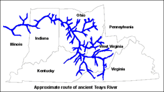 The Teays River /ˈteɪz/[1] (pronounced taze) was a major preglacial river that drained much of the present Ohio River watershed, but took a more northerly downstream course. Traces of the Teays across northern Ohio and Indiana are represented by a network of river valleys. The largest still existing contributor to the former Teays River is the Kanawha River in West Virginia, which is itself an extension of the New River. The name Teays from the Teays Valley is associated with this buried valley since 1910.[2] The more appropriate name would be ancestral Kanawha Valley.[3] The term Teays is used when discussing the buried portion of the ancestral Kanawha River.[3] The Teays was comparable in size to the Ohio River. The River's headwaters were near Blowing Rock, North Carolina; it then flowed through Virginia, West Virginia, Ohio, Indiana and Illinois. (Hansen, 1995).[4] The largest tributary to the Teays River was the Old Kentucky River (Teller 1991), which extended from southern Kentucky through Frankfort and subsequently flowed northeast, meeting other tributaries and eventually joining the Teays.[4]