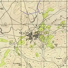 Archaeological excavations show that the site (a tell or archaeological mound) was continuously inhabited since the 5th millennium BCE.[5] It appears on the Madaba Map as Saphitha, while the Crusaders called it Blanche Garde.[6][7] It is mentioned by Arab geographers in the 13th and 16th centuries. Under the Ottoman Empire, it was part of the district of Gaza. In modern times, the houses were built of sun-dried brick. The villagers were Muslim and cultivated cereals and orchards.