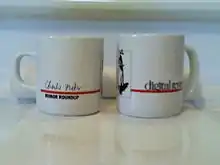 "Charlie Matco" was usually depicted as a cartoonish, "private eye" sort of figure, after the fashion of Nick Danger, but without any facial features (i.e., just a fedora, a trenchcoat, and a cigarette in one hand).[3] That logo, which appeared next to the "Charlie Matco" byline on every "Rumor Roundup" article, was also depicted on the coffee mug, which Shannon would send to anyone who (intentionally or otherwise) provided useful information. According to Jeffrey Steinberg, former Technical Editor of Digital Review, the signature on the mug was in the handwriting of Deborah McDonald, the publication's managing editor at the time. In fact, a "Charlie Matco" mug now lives in the Computer History Museum.[8]