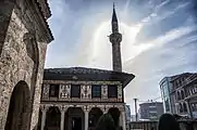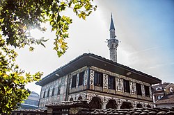 Other notable historical features from the Ottoman period in Tetovo are The Saat Mosque ("The Clock Mosque") as the name implies it used to have a clock in its minaret, and the Kumluk Mosque ("The Sandy Mosque"), an old mosque in the upper bazaar area of Tetovo. The name is derived from the reddish-yellow exterior of the mosque.
