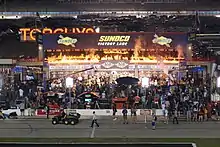 In June 2017, the track hosted the Stadium Super Trucks as a support event for IndyCar.[22] The series raced on a dirt track consisting of the infield, pit road, and the frontstretch. To promote the event, the speedway's turn two featured an off-road expo nicknamed the "Off-Road Ruckus", allowing visitors to drive their off-road vehicles along an obstacle course and observe exhibits.[23]
