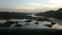 The Thamirabarani or Tamraparni or Porunai is a perennial river that originates from the Agastyarkoodam peak of Pothigai hills of the Western Ghats, above Papanasam in the Ambasamudram taluk.[2] It flows through Tirunelveli and Thoothukudi districts of the Tamil Nadu state of southern India into the Gulf of Mannar. It was called the Tamraparni River in the pre-classical period, a name it lent to the island of Sri Lanka. The old Tamil name of the river is Porunai. From the source to sea, the river is about 128 kilometres (80 mi) long and is the only perennial river in Tamil Nadu. This river flows towards north direction initially. However, it changes to east direction later.