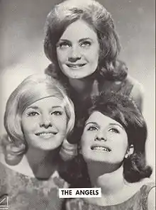 The group originated in New Jersey as the Starlets which consisted of sisters, Barbara "Bibs"[3] and Phyllis "Jiggs"[3] Allbut, Bernadette Carroll, and Lynda Malzone.[3] They had some minor local hits and wound up doing back-up work in the studio.[3] When Lynda Malzone left, Linda Jansen became the new lead singer. Their manager, Tom DeCillis, turned his focus to Bernadette Carroll and dropped the rest of the group. Carroll would find solo success in 1964 with her Laurie Records single "Party Girl."[3] After a failed attempt at a record deal with producer Gerry Granahan, the Allbut sisters turned their focus to education.[3] Phyllis Allbut was in teacher's college at the time and Barbara Allbut was accepted into the Juilliard School for her abilities as a musical arranger.[3] Soon Granahan, who had previously rejected the group, suddenly saw hit potential in the song they had performed for him in their audition, a version of "Till," and wanted them to record it in the studio.[3] "Till" became their first single under their new name, the Angels, and also their first hit (No. 14 US) released by Granahan's Caprice label in 1962.[3] The song was followed up with a second national hit, "Cry Baby Cry." The Angels had one album on Caprice, titled ...And the Angels Sing in 1962.
