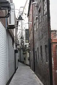 The Belfast Entries are a series of historical narrow alleyways in the city centre of Belfast, Northern Ireland, mostly in the vicinity of High Street and Ann Street. When the town was first laid out, these alleyways serviced dense residential and commercial development. The surviving examples retain pockets of historic development including many Victorian and pre-Victorian period pubs, some of which remain open for business to this day.[1] Former Social Development Minister David Hanson described the Entries as the streets "where Belfast began and developed into the city it is today".[2] Dating back to at least 1630 but most probably earlier than that, these entries are the oldest parts of Belfast city.