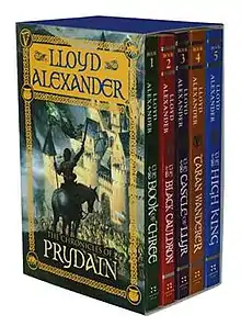 The Chronicles of Prydain is a pentalogy of children's high fantasy Bildungsroman novels written by American author Lloyd Alexander and published by Henry Holt and Company. The series includes: The Book of Three (1964), The Black Cauldron (1965), The Castle of Lyr (1966), Taran Wanderer (1967), and The High King (1968). The second book earned a 1966 Newbery Honor and the final novel won the 1969 Newbery Medal.[1]