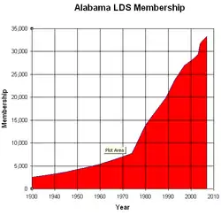 The LDS Church began to grow more rapidly in Alabama following World War II. Alabama's first stake was created in Huntsville in 1968.