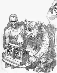 After the conspirators part to attend to various errands, Johnny waylays and kills them separately, then breaks into Bemis's desk in search of the antidote he reasons they must have possessed. He discovers a bottle of potassium iodide, a standard fungicide, and two hypodermic syringes. Clumsily, with teeth and claws, he manages to open the bottle and fill one of the syringes, with which he trots back to the station in search of Methuen. But his attempts to inject Methuen and the other victims fail, as they instinctively resist his efforts. Nor can he order them to do it themselves, as the conspirators might have, his ursine mouth and throat being incapable of human speech. Attempting to direct them via sign language or a laboriously typed message fare no better. Johnny is frustrated: "It seemed absurd–even his little bear's sense of humor realized that–that the spell could be broken by a simple command, that he alone in the whole world knew the command, and that he had no way of giving it."