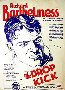 The Drop Kick (also known as Glitter in the UK) is a 1927 silent film directed by Millard Webb written by Katherine Brush about a college football player (Richard Barthelmess). It was one of the early films of John Wayne who was only aged 20 in the film. He too played a college footballer. A mute silent print was transferred onto 16mm film by Associated Artists Productions in the 1950s and in 1960s by United Artists Television. Prints of the film are preserved at the Library of Congress and the Wisconsin Center for Film and Theater Research, Madison.[1][2][3][4]