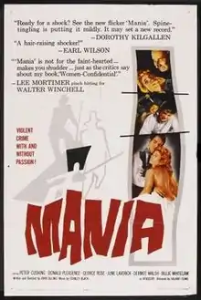 Several Cuts of the film have circulated in different markets. The currently available DVD from Image Entertainment lists the runtime for the "uncut" original theatrical version at 94 minutes, with a slightly extended "Continental" version—produced for European markets with more permissive censors—running at 95 minutes and including short sequences or alternate takes with more nudity.[7] The film was released by Valiant in the USA under the titles Mania and Psycho Killers using the British theatrical cut, but a later 1965 re-release by Pacemaker Pictures under the title The Fiendish Ghouls cut 23 minutes from the film's runtime. Both the UK and the continental cuts of the film are included on the DVD from Image Entertainment.[4]
