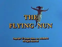 During its first two seasons, The Flying Nun aired on Thursday nights at 8:00pm EST, where the series competed in the ratings with Daniel Boone on NBC and Cimarron Strip on CBS.[10] The show was an instant hit, with high ratings and was declared the "hit of the season;" however, the ratings dropped as the season progressed.[11] During its second year, the series was scheduled against Daniel Boone and Hawaii Five-O. During its final season, the series was moved to Wednesday nights at 7:30pm EST, scheduled opposite The Glen Campbell Goodtime Hour. All of the competing shows ranked higher in the ratings than The Flying Nun, which eventually led to its cancellation. During its three-year run, the series was a part of a three-show comedy block on ABC that also consisted of Bewitched and That Girl.[12] Despite its early popularity, the show's ratings never broke the Nielsen top thirty and the final episode aired on April 3, 1970.