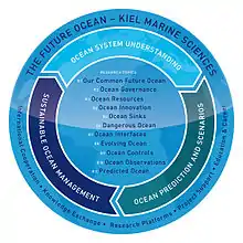 The Future Ocean is a Cluster of Excellence founded in November 2006 in line with the German excellence initiative by the Christian-Albrechts-Universität zu Kiel (CAU), the Muthesius Kunsthochschule (MKHS), the Institut für Weltwirtschaft (IfW) and the Helmholtz-Zentrum für Ozeanforschung (GEOMAR).[1][2] It is an interdisciplinary marine research group and it is funded by the German Research Foundation (DFG).[3] Part of the cluster is the Integrated School of Ocean Sciences (ISOS) which is a post graduate school for ocean sciences in Kiel.