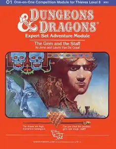 The Gem and the Staff, by John and Laurie Van De Graaf, is an adventure module for the Dungeons & Dragons Expert Set. Rather than being a typical group adventure, The Gem and the Staff was designed for head-to-head tournament-style play, with players separately playing the same adventure and competing against each other for points earned by accomplishing certain goals. The adventure is only playable with one dungeon master (DM) and one player.