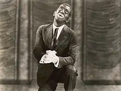 Jack Robin's use of blackface in his Broadway stage act—a common practice at the time, which is now widely considered to be racist[45]—is the primary focus of many Jazz Singer studies. Its crucial and unusual role is described by scholar Corin Willis: