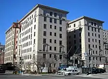 The F. H. Smith Corporation, a local real estate developer of apartment and office buildings, began construction on The Jefferson, an eight-story, 74-unit apartment building, in July 1922. Cost of construction was $900,000 ($13,746,918 in 2019 dollars), and the building was originally owned by The Jefferson Corporation.[1] The architect was Jules Henri de Sibour,[2] who designed the building in the Beaux-Arts architectural style.[3][4][5][6] The building was named for Thomas Jefferson, the former President of the United States and Founding Father.[3][7]