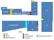 The Mall was owned by Henry Boot Developments; the shops between and including Your Local and The Mall News are owned by Threadneedle Property investments. The reason for this is because this building was there before The Mall opened. At that time it was wholly occupied by British Gas showroom. In 1979 75 High street as it was and still partly is was divided into 7 units (75 High Street (currently Art at Home), another 75 High Street (which remained a British Gas showroom, now KFC), 32, 28/30 (which has never been individual units), 26 and 24 and was extended up to the part currently owned by Henry Boot Developments (currently Strattons Jewelers).