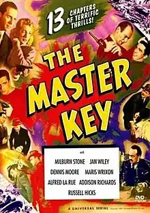 The Master Key is a 1945 Universal movie serial, directed by Lewis D. Collins and Ray Taylor. It starred Milburn Stone, Dennis Moore and Byron Foulger. This serial also featured the screen debut of future western film star Lash LaRue.