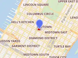 The building was designed by H. Craig Severance and opened in 1926 as the Manger Hotel, a major hotel chain of the period.[2] It was connected to the famous Roxy Theatre, a movie and stage show palace of the same time. The lobby of the Roxy was actually located in the 50th St and Seventh Avenue corner of the hotel building. On opening, the hotel offered 2,250 rooms and was the largest hotel in Times Square. The development cost more than $10 million (equivalent to more than $144 million in 2019), an enormous amount of money at the time. Madison Square Garden was a block to the west and drew thousands for major events.