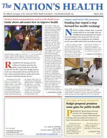 The Nation's Health is the monthly newspaper of the American Public Health Association, a source of news from and for the public health field. The newspaper covers issues of interest to public health professionals, including news on federal, state and local public health policy; developments and trends in public health science and practice; global health issues; research findings; and coverage of state and local health departments.