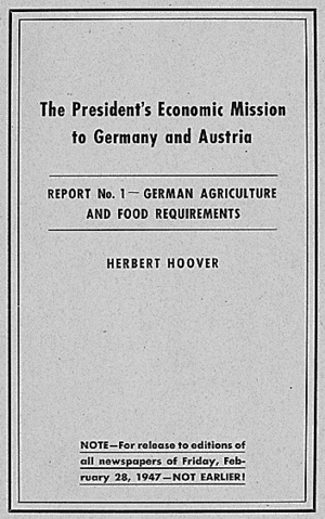 - Hoover, Herbert (February 28, 1947), German Agriculture and Food Requirements, The President's Economic Mission to Germany and Austria, 1CS1 maint: ref=harv (link)