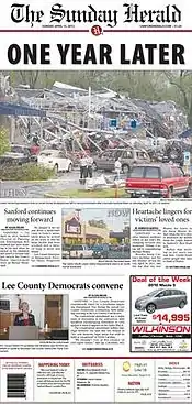 The Sanford Herald is a newspaper published Tuesdays through Saturdays in Sanford, North Carolina. The Sanford Herald has a daily circulation of just over 9,000[2] and is published Tuesday through Saturday, and has published continuously since 1930. The Herald is a member of the Audit Bureau of Circulations and the North Carolina Press Association. It is published by the Paxton Media Group of Paducah, Kentucky. The paper announced on Dec. 8, 2019 that it would stop publishing a Sunday edition as of Jan. 7, 2020.[3][4]