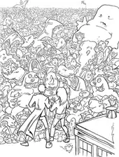 When you see the story, it'll make so much sense that all these characters are involved. It's simply doing what kids do in their imaginations: they're experts at crossovers and would think of nothing of having their Dalek toys battling Star Wars droids. Why not have all the factions of the Doctor Who universe going into battle together?