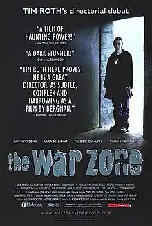 The War Zone is a 1999 British drama film written by Alexander Stuart, directed by Tim Roth in his directorial debut, and starring Ray Winstone, Tilda Swinton, Lara Belmont and Freddie Cunliffe. The film is based on Stuart's 1989 novel of the same name and takes a blunt look at incest and sexual violence in an English family.